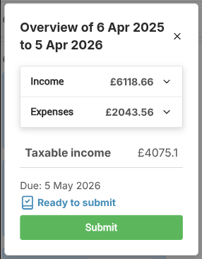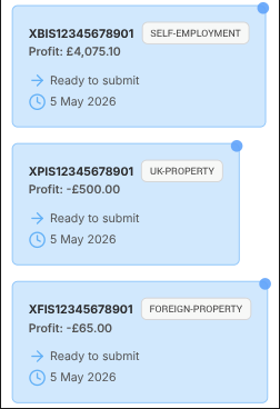 Submit quarterly updates to HMRC as required under MTD for Income Tax. CalCal will prepare and send them automatically.